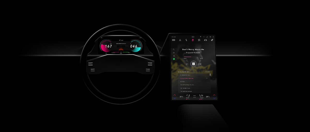 Please note that due to confidentiality agreements, car HMI projects cannot be publicly displayed. Feel free to explore the highlighted example below and get in touch for more information!