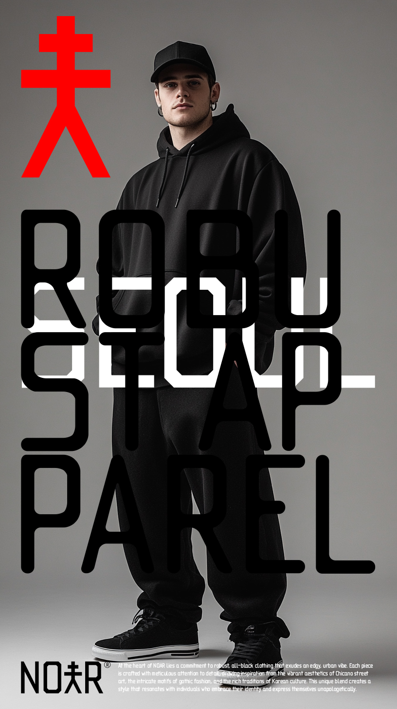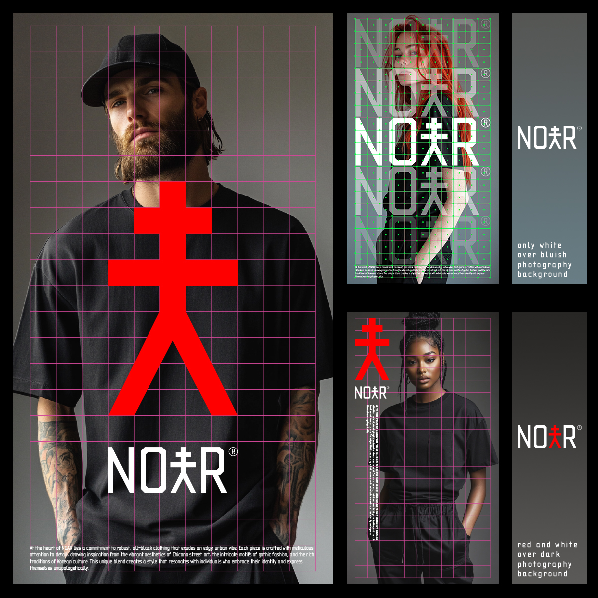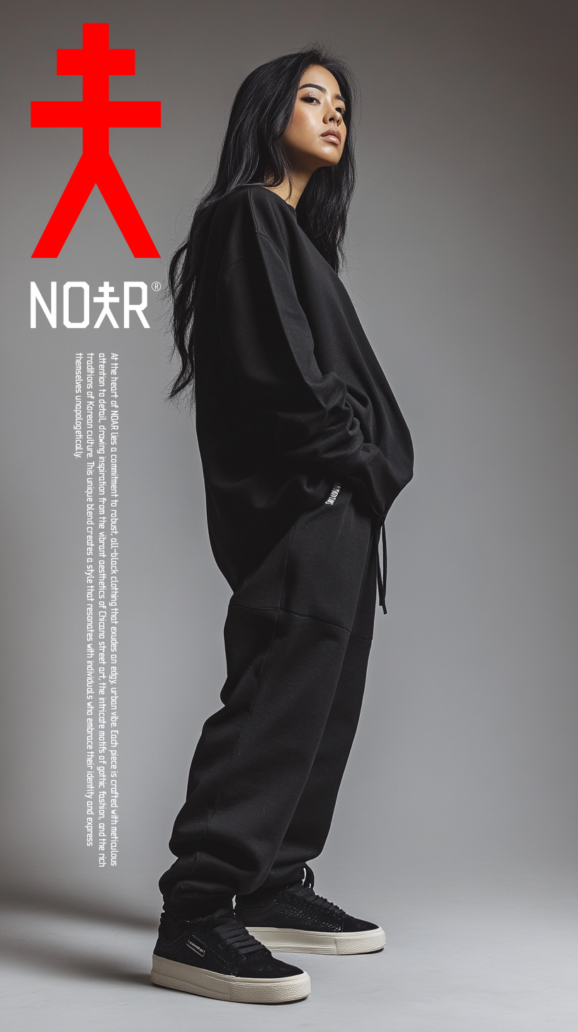 The visual identity of a bold, black clothing Korean apparel brand was crafted,